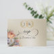 Detta RSVP-kort är prytt med en vacker akvarellbukett och ett sammanlänkat bladmonogram på naturinspirerade färgade bakgrunder. Baksidan har detaljer för mottagaren att fylla i. Designad för att samordna med Wildflower Wedding Collection. För att ändra detaljer, klicka «Personalisera». För att flytta texten eller ändra textstorlek, teckensnitt eller färg, klicka «Klicka för att anpassa ytterligare».