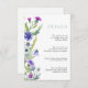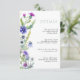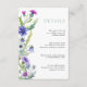 Det här tilläggskortet till bröllopet är ett vackert och elegant sätt att dela detaljerna om er speciella dag. Det har en fantastisk girlang av akvarell- blommor i lila och blått med blågröna blad som graciöst pryder vänster sida av kortet. Det blomsterarrangemanget är charmerande och ger en touch av lekfullhet till designen. Kortet är perfekt för ett vårbröllop eftersom det fångar essensen av säsongen med sina livfulla färger och ömtåliga blommor. Ni kan använda det här tilläggskortet för att ge era gäster viktig information om er ceremoni och mottagning, inklusive vägbeskrivningar, boende, önskelista och mer. Det är ett underbart sätt att lägga till en personlig touch till er bröllopspapper och få era gä