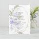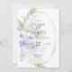 VIGSEL- OCH FÖRLOVNINGSINBJUDAN | Akvarellblommor och gyllene geometriska former med eukalyptusblad, lila och violetta anemone samt hortensia - en mångfacetterad oval ram i guld dekorerad med eukalyptusblad och blomsterbuketter. Baksidan har en kompletterande koordinerad färg. Anpassa text, teckensnitt, färg och storlek. Detta är en del av en komplett bröllopspappersserie med matchande bröllops-, baby shower- och andra evenemangskort.