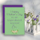 Morsdagskort. Framsidan är lila och baksidan är salladgrön. Du kan anpassa hälsningar och önskningar som du vill. Kortdesignen kompletteras med ömtåliga akvarellblommor.