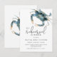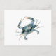 Akvarellblå krabba skaldjursmiddag före bröllopet vykort