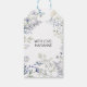 En samling blåtonade akvarell vildblommor och grönska utgör bakgrunden för denna presenttagg. Perfekt sätt att tacka gästerna på en vildblomma-inspirerad eller boho bröllops-, par- eller baby shower, men du kan anpassa den för en förlovningsfest, årsdagsfirande, baby shower eller födelsedagsfest. Finns med matchande produkter.