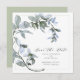 Akvarellgrönska Blå Blommig Skrift Spara Datumet