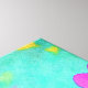 Färgglada rosa och gula akvarellhjärtan på en grungig akvablå bakgrund ser ut som ett hav fullt av kärlek.