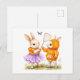 Akvarellillustration av två kaniner som fångar fj vykort