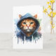 Akvarell fläckar konst med en söt orange tabby katt med vackra gröna ögon iklädd en hoodie på detta tomma vykort.