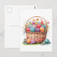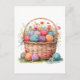 Akvarellkorg med garnkulor och blommor vykort