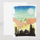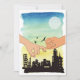 Akvarellpar lovar stadslandskapsvy, rosa löfte kort