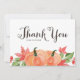 Skicka tack med detta anpassningsbara tackkort. Den har akvarell orangea pumpor och lönnlöv med rustik kalligrafi. Personifiera genom att lägga till dina detaljer. Detta pumpa tack-kort är perfekt för höftbröllop, födelsedagar, baby shower och bröllops shower.