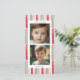 Fira glädjen under högtidsperioden med vårt vattenfärgstrimmiga julkort, en perfekt blandning av elegans och personlig charm. Detta vackert designade kort har ett slående vattenfärgstrimmigt mönster i en harmonisk palett av rött, rosafärgat, salvia, guld och grått, som skapar en festlig och inbjudande bakgrund för dina julhälsningar. Kortets bakgrund är prydd med mjuka, flödande vattenfärgstrimmor som inger en känsla av värme och glädje. Kombinationen av rött, rosafärgat, salvia, guld och grått ger en modern twist till traditionella julfärger, vilket ger en sofistikerad men lekfull estetik. Framsidan av kortet innehåller två anpassningsbara fotomallar, så att du kan visa upp kärleksfulla minnen från året. Oavsett om det är en familjeporträtt, en ögonblicksbild eller ett vinterskönt landskap, erbjuder dessa mallar en personlig touch som förvandlar ditt kort till en skatt. Idealiskt för familjer, par eller individer, är detta julkort designat för att passa alla firanden. Dess roliga design gör det perfekt för att skicka varma önskningar och speciella minnen till