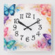 Akvarellstänk Fjäril och Glitter Flickas Fyrkantig Klocka