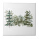 Akvarelltallskog och rustik bergstuga kakelplatta