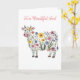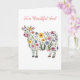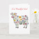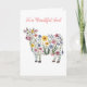 En akvarellillustration av vildblommor arrangerade i en form som liknar en fullstor ko. Blommorna finns i olika färger, inklusive rosa, gul, blå och lila. Anpassa den med ett födelsedagsmeddelande eller använd vår förifyllda text.