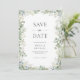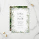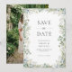Akvatintgrönska med elegant bröllopsfoto spara datumet