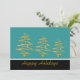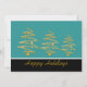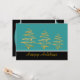 Julfestlig inbjudan med anpassningsbara textmallar. DESIGN: Eleganta, stilrena och klassiska abstrakta julgranar i guld - tre stycken - med glaskulor är placerade ovanför ett tunt vitt horisontellt band, som ligger ovanpå ett brett svart horisontellt band med en textmall. BAKGRUNDSFÄRG: Bakgrundsfärgen kan ändras till valfri färg. BAKSIDA: En guldfärgad cirkel tittar fram genom kanterna på en svart vertikal rektangel med vit kant; på vilken textmallar finns för att specificera vad gästerna ska ha på sig, vad temat för sammankomsten är och var de ska träffa värden på den speciella dagen. ANVÄND DET FÖR: Julfirande inbjudningar till vänner och familj, företagsavslutningar; jul i juli middagar eller någon annan fest som du är värd för under högtiden. ANPASSNING: Lägg till din egen text eller ändra textmallarna för att passa ditt evenemang. Färg, storlek och stil på typsnittet och bakgrundsfärgen kan också ändras. V