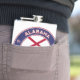 Alabamas märke med flagga Alabama och flagga i USA färg, avrundat. Emblem av Alabama. Alabamas försegling. Samling i USA Stater.