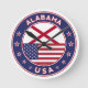 Alabamas märke med flagga Alabama och flagga i USA färg, avrundat. Emblem av Alabama. Alabamas försegling. Samling i USA Stater.