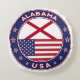 Alabamas märke med flagga Alabama och flagga i USA färg, avrundat. Emblem av Alabama. Alabamas försegling. Samling i USA Stater.