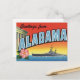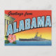 Denna slående design i retro-stil fångar historien och charmen hos Hjärtat av Dixie. Den har den djärva "Greetings from Alabama"-typografin mot en naturskön bakgrund med ett örlogsfartyg (med hänvisning till det ikoniska USS Alabama Battleship Memorial Park i Mobile) och ett klassiskt neoklassicistiskt monument. En vacker rosa blomma, som ofta representerar det södra landskapet, fullbordar den vintage estetiken. Perfekt för fans av klassiska reseposter, retrokonst, militärhistoria och den rika kulturen i denna södra amerikanska delstat.