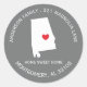 Unikt tillstånd för Alabama Nytt klistermärke för hemadress på en grått-bakgrund med rött hjärta och flygplan.