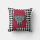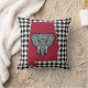 A herringbone background with the state of Alabama and an elephant. Crimson and gray colors on black and white herringbone.