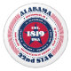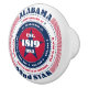 Dekorera ditt hem eller företag med den här unika keramiska knoppen som har en röd, vit och blå cirkelformad typografi med fakta om den amerikanska staten Alabama. Det blev en stat 1819 och är den 22:a stjärnan. Dess huvudstad är Montgomery, och dess förkortning är AL. Andra intressanta fakta är dess region, zona tidskoordinater, geografiska koordinater och namn.