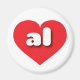 Den här magneten har ett pulserande rött hjärta som innehåller fet, vit, nedre fodral brev al, en lekfull version av förkortningen för Alabama, gulvitare tillstånd. Roll Tide!