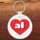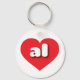 Den här nyckelkedjan har ett pulserande rött hjärta som innehåller det feta, vita, rundade, nedre fodral brev al, en lekfull förkortning för Alabama, gulvita. Roll Tide!