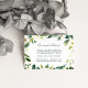 Släng den här chicen och skicka in dina bröllopsinbjudningar för att få ut gäster från stan med information om hotellarrangemang eller gruppkoder. Designat för att samordna med vår samling i Alabaster bröllop, har korten en svartvit text med ett botaniskt och blommigt gräns i vattenfärgsskuggor av grönt och vitt.