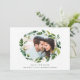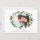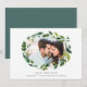 Elegantens botaniska bröllop spara datum-kort har ett favoritfoto (vågrät- eller landskapsljud) omgivet av en ovalig krans av lush grönt blad och vita blommor. Anpassa till namn, bröllop-datum och plats längs grund under "spara datumet" i klassiskt brev. Lägg till ytterligare information på baksidan, inklusive webbplatsen bröllop och en indikation på att en formell inbjudan kommer att följa.