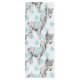 Vitaktiskt teckning av en alpaca med stövlar och en väst med en turkosdiamant mönster mot en blek turkosa med diamant mönster. En vacker illustration för djur älskare och de som kärlek känner sig varma, luddiga!