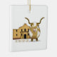 Den här humoristiska noveltyn har en Texas Longhorn och Alamo. Alla Texans och Texas älskare är medvetna av båda. Håll ut den här roligten, skräddarsydd prydnadsföremål på träd.