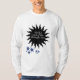 Svarta skisserade sol med vit text, "Alaska land vid midnatt sol" och stjärnor under kläder. Skapat särskilt för Alaskans!