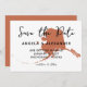 Minimalistiskt bröllop spara datum med ett modernt, handskrivet kalligrafiskript. Anpassa terracotta färg i Alaskas statsform så att den stämmer överens med paletten bröllop färg. Teckensnittet stil, färg och storlek kan anpassas efter behov. På baksidan kan du ändra bakgrunden till färg om du vill.