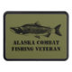 En svart linje teckning av en Sockeye Salmon (Oncorhynchus nerka) med anpassadet "Alaska Combat Fishing Veteran". Laxfisket i Alaska är mycket populärt, alltför populärt i landet. Föreställ er tusentals sportfiskare, nästan skuldra åt axeln, som i båda banker i en ström försöker undvika att korsa linjer med alla andra, i hopp om att landa en stor lax. Alaskans kallar det för att bekämpa fisket. Annonsera din veteranstatus.