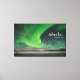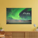 Auroran Borealis blåser över Knikfloden i Alaska. Det finns också text som lyder "Alaska Curtain Call" av Ted Raynor