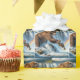 En stor grizzbjörn står i stor utsträckning i ett rusande vattenfall och regnbåge, som når ut för att fånga en hoppande regnbåge.