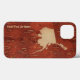 En digital rekreation av en silhuett karta i Alaska som bildas genom att försiktigt skrapa av det rödaktiga yttre yta på baksidan av fågelbark (Betula papyrifera) för att avslöja det ljusare, gulaktiga lagrar under. Detta är ett traditionellt hantverk mellan inhemska amerikaner/första nationer i norra FN och Kanada. Lägg till din egen text.