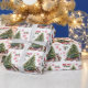 Det upprepade mönster på detta papper om julomslag innehåller en bild av en söt Alaska Malamute-hund som bär en fetiös röd båge. Hund sitter framför ett dekorerat Helgdag träd. Stiliserad röd text och grönt säger GOD JUL", och din egen namnteckning finns i två fält för att du ska kunna anpassa den. Andra bilder som ingår i mönster är rött dekorativt snöflingor, polkagrisar och en peppermint lolly pop.