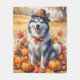 Alaska Malamute i Höst löv Thanksgiving Art Fleecefilt