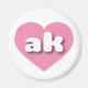 Denna magnet har ett pulserande rosa hjärta som innehåller den feta, vita, rundade, nedre fodral brev ak, en lekande förkortning för Alaska, den sista gränsen.