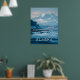 Fånga den sista gränsens skönhet med den moderna Alaska-reseaffischen. Den här teckningen har en djärv design med valar och en kryssningsbild och ger en ny frakt till klassiska reseutskrifter. Perfekt för att lägga till en äventyrlig, väckarklocka som inspirerar dig till hemmet, kontoret eller galleriväggen.