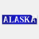 Alaska-klistermärke i blått och vitt. Anpassa teckensnittet stil. Skapa din egen souvenir. Bakgrunden har en medelstor till mörk blått övertoning.