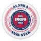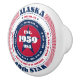 Dekorera ditt hem eller företag med den här unika keramiska knoppen som har en röd, vit och blå cirkelformad typografi med fakta om den amerikanska staten Alaska. Det blev en stat 1959 och är den 49:e stjärnan. Dess huvudstad är Juneau och dess förkortning är AK. Andra intressanta fakta är dess region, zona tidskoordinater, geografiska koordinater och namn.