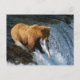 Alaskabobruntbjörn som fångar laxen på bäckar vykort