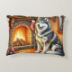 Alaskan Malamute Fireplace with Christmas Lights Prydnadskudde