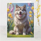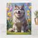 Alaskan Malamute Hund Vårblommor Målning Kort
