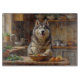 Tillsätt en mysig och lekfull touch i ditt kök med denna charmiga Alaskan Malamute-design med en fluffig valp som lagar mat i en varm hemmiljö. Med sin tjocka päls, vänliga uttryck och kockinspirerade pose ger detta konstverk personlighet och glädje till alla utrymmen.