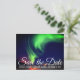 Skapa din egen spara datum-vykort med ett foto av norrsken eller Aurora Borealis i Alaska. Använd ditt eget bröllopsfoto. Det finns ett vintagefilter applicerat på fotografiet som kan tas bort eller ändras. Anpassa fotot!