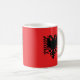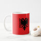 Albanien flagga. En svart, dubbla örn visas tydligt på röd bakgrund. Utformningen är symmetrisk med detaljerad ludd på örnen.